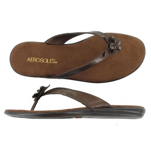Aerosoles Women's Branchlet Thong Sandals - flexible comfort sandals really can look this good Extra cushioning in the padded, faux suede footbed makes this casual thong sandal extra comfortable, while a flower embellishment on the soft, faux patent leather upper makes it extra cute. The lightweight, ultra-flexible rubber outsole has a diamond pattern for excellent surface grip and shock absorption.