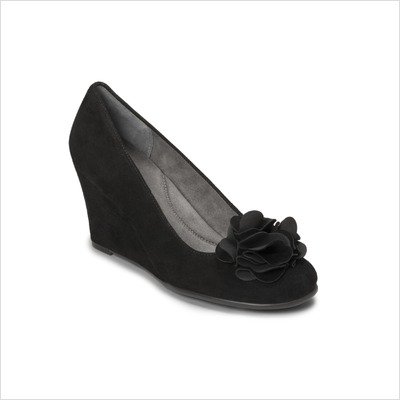 PLUMBRELL004M50 Color: Black Suede, Size: 5 Available in Multiple Colors! Plumbrella Pump by Aerosoles Features: -Women's Plumbrella Pump in Black Suede. -Available in whole and half sizes. -Available in Medium width only. -The sole is constructed from rubber. -The upper is constructed from kidsuede. -Part of the Plumbrella collection. -Manmade suede lining and sock liner. -Self covered heel trim detail. -Slip on entry detail. -3'' heel. -Available in your choice of: -Black Suede (PLUMBRELL004). -Mink Suede (PLUMBRELL249). -Dark Purple Suede (PLUMBRELL560). . Bring the beauty of fresh flowers to your shoe wardrobe. Fully blossomed suede flower embellishment creates a charming focal point in this 3' covered wedge pump. Bendable rubber sole with diamond pattern and cushioned footbed prove that these are pure Aerosoles. Need help finding or measuring the right size for you? Need to convert your size between country standards? Click here to see our Size Guide!